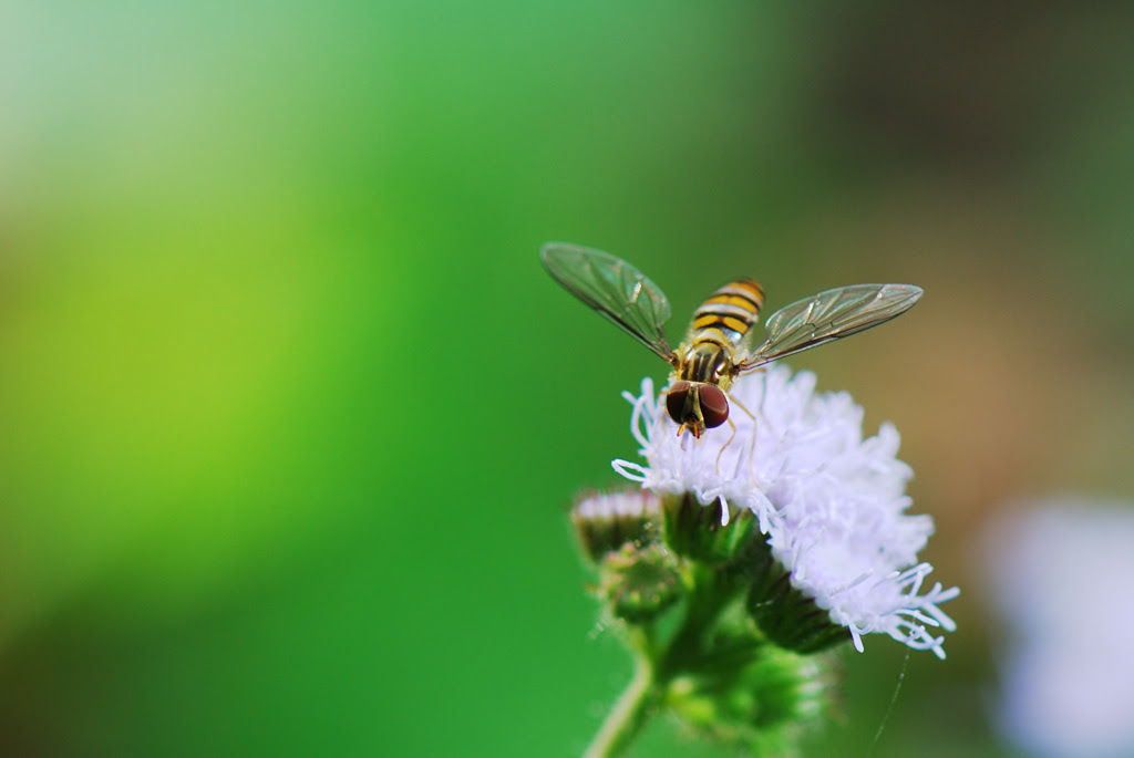 正想這個景不知拍起來怎樣,食蚜蠅就湊趣的停了上來,Luck!!!